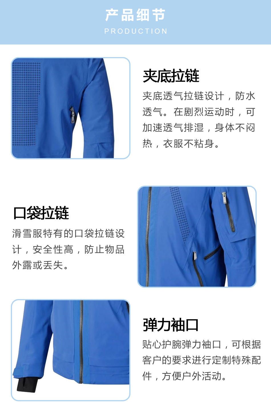 口袋拉鏈:滑雪服生產(chǎn)特有的口袋拉鏈設(shè)計,安全性高,防止物品外露或丟失。